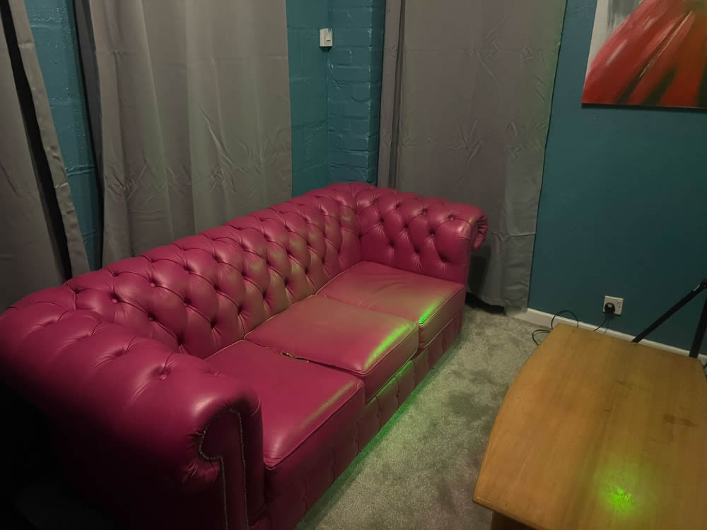 Studio 2 is a self contained space with its own shower and kitchen. There are numerous pieces of BDSM furniture and a good selection of toys. The studio includes new medical room and chill out area with access to a new outside play space (which will be available late February) The studio has available various lighting options